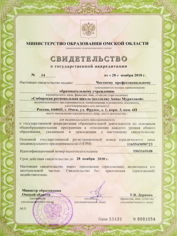 - Заявление о приеме в ЧПОУ «СРШ (колледж) Анны Муратовой» для прохождения промежуточной аттестации на имя директора;